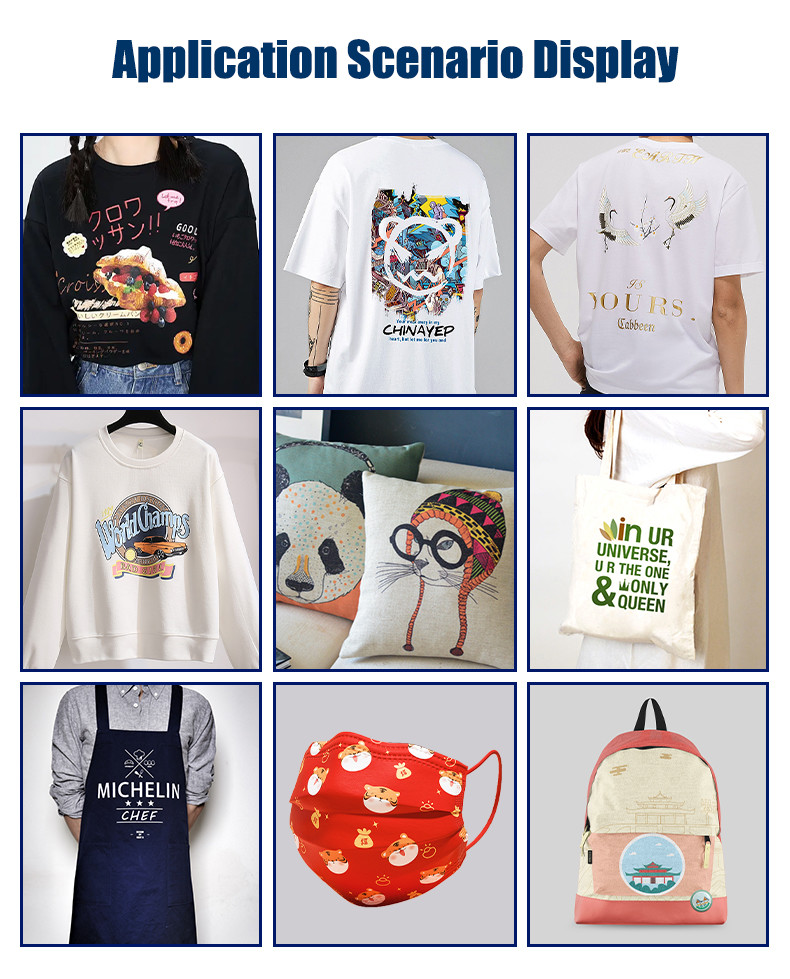 Der weiße Tinte-Hotstempeldruck eignet sich für die persönliche Anpassung.und die Übertragungseffekte sind waschbarer und trennungsfestEs hat die Eigenschaften eines starken visuellen dreidimensionalen Gefühls, eines guten Handgefühls, vielfältiger Farben, Umweltschutz von Materialien, reichhaltiger dreidimensionaler Wirkung und so weiter.Das Produkt ist stabil, die Schnittstelle ist einfach, die Bedienung bequem und die Druckgeschwindigkeit schnell.